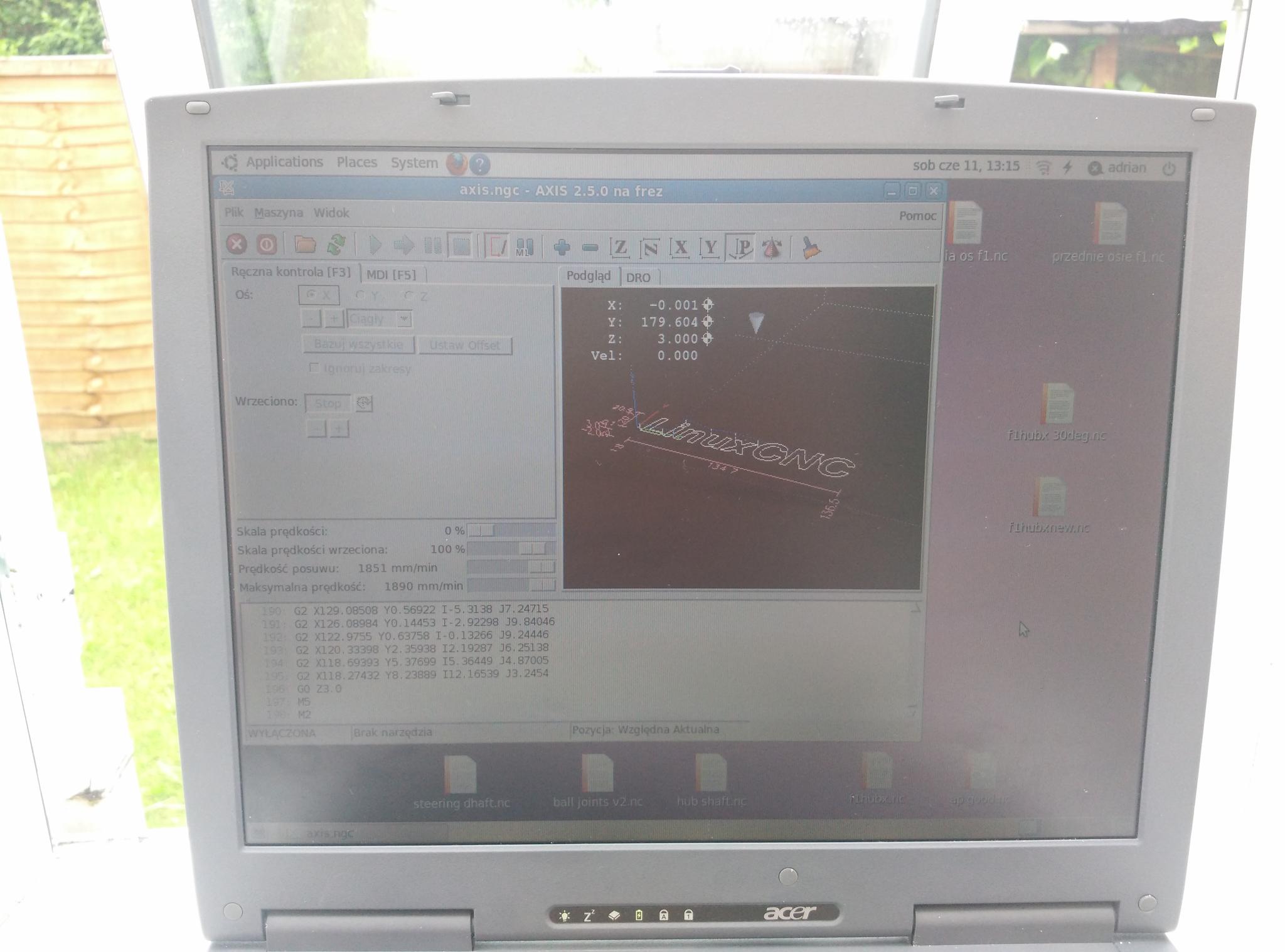 - laptop Acer TravelMate 280 with LINUXCNC software.