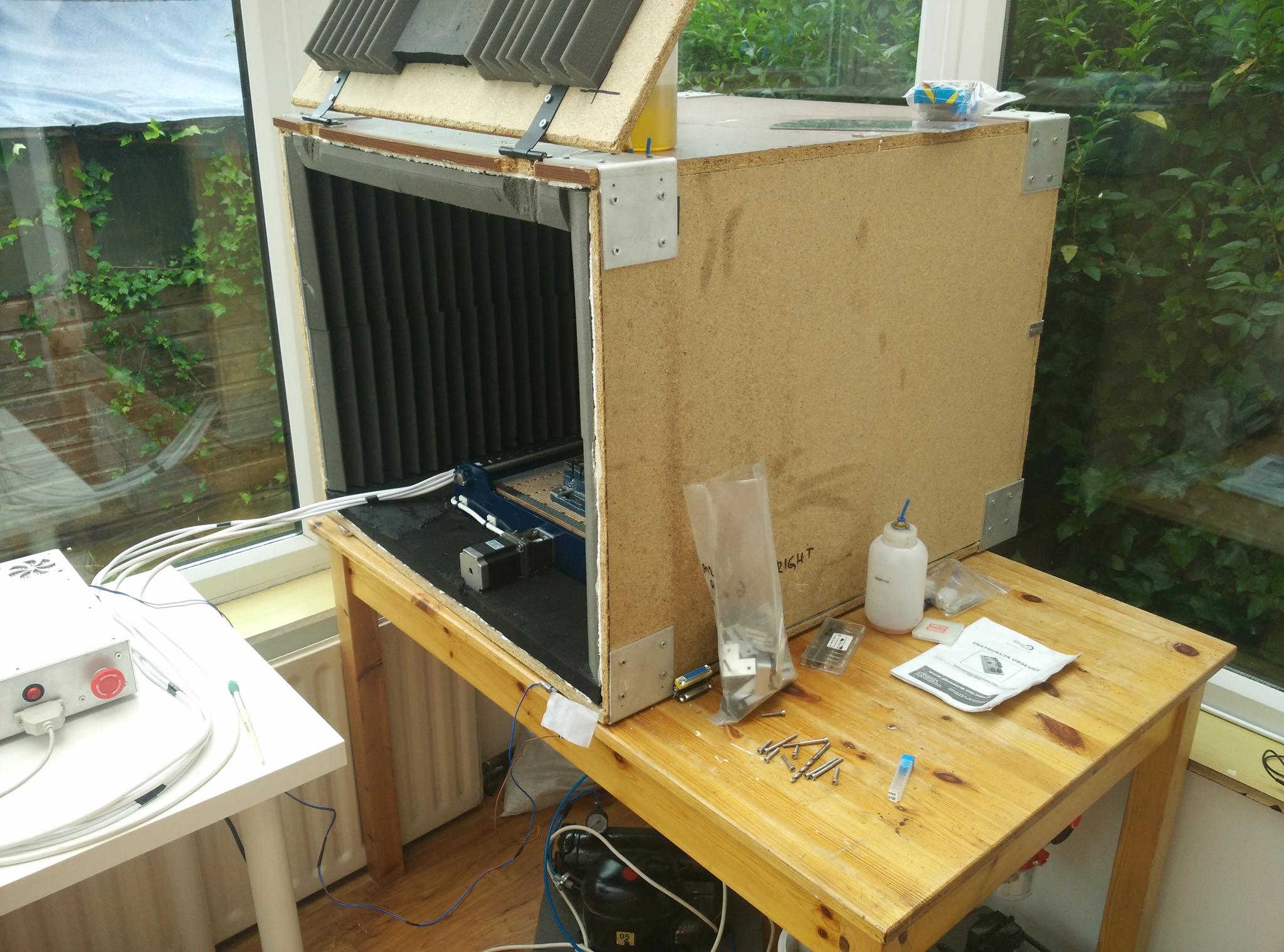 - Sound absorbing box with 35mm triangle foam (overall box dimensions L 800 x W 800 x H 650)